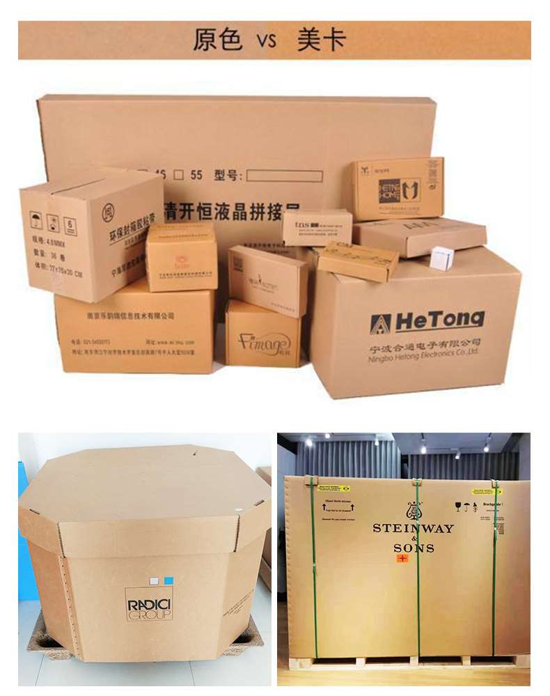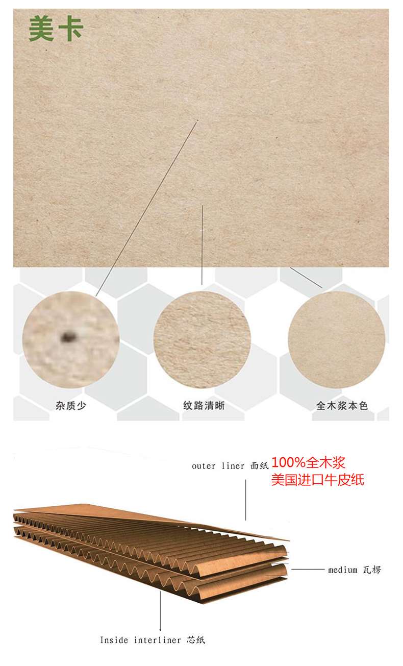 美卡紙箱與普通紙箱有一定的區(qū)別,它們從顏色上看,美卡紙箱的顏色較深,見(jiàn)光變色。纖維方面,美卡紙箱的纖維較長(zhǎng)。使用的木漿來(lái)看,美卡紙箱采用的木漿達(dá)90以上。